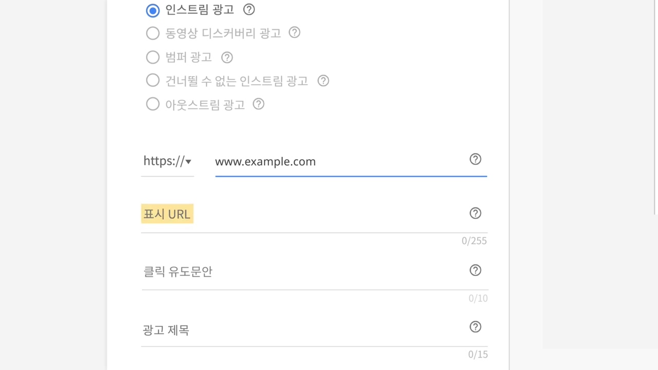 7)유튜브 최종 도착 URL과 표시 URL을 입력