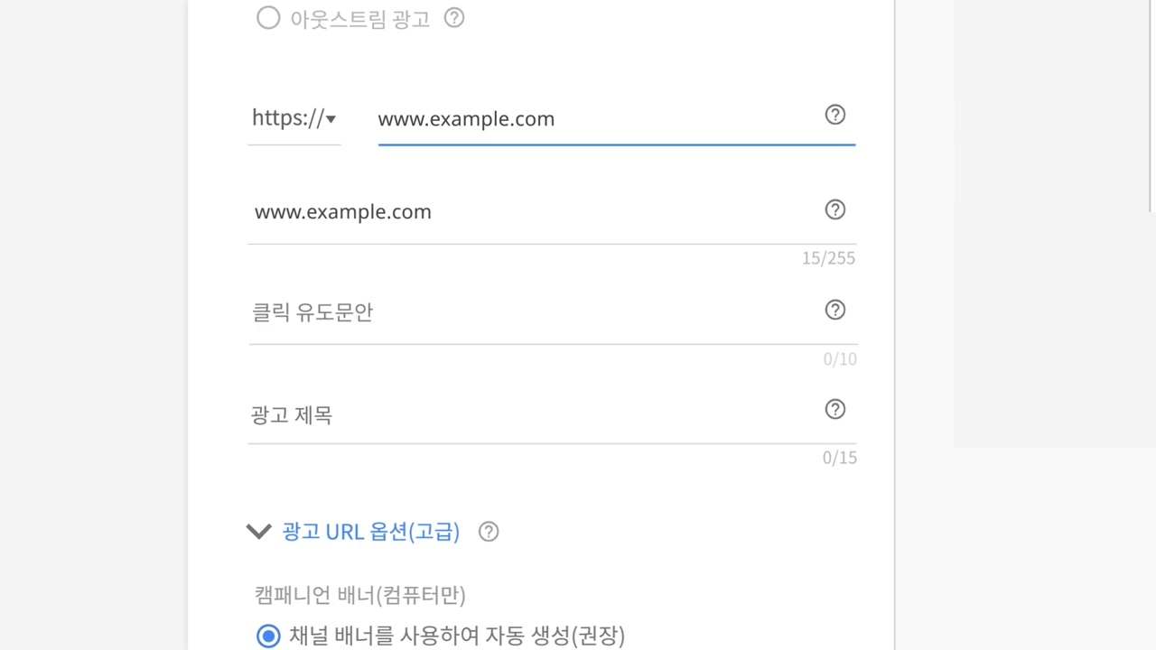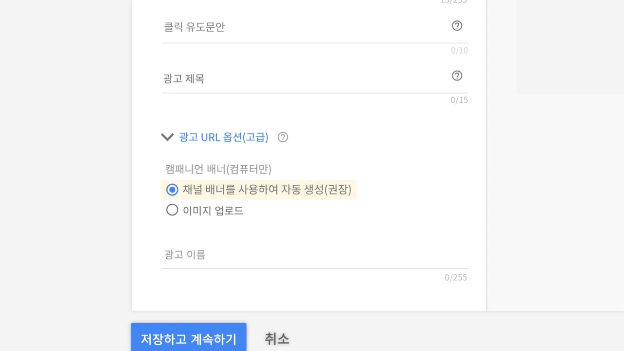 9)광고 URL 옵션(고급) → 캠패니언 배너(컴퓨터만)_ ◎ 채널 배너를 사용하여 자동 생성(권장)